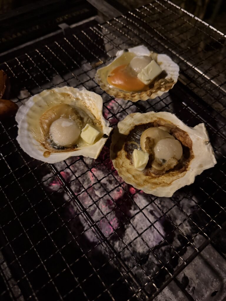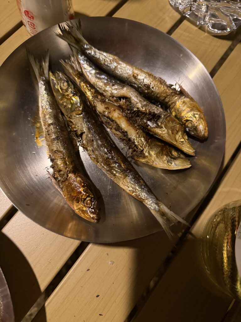 馬刺し、真いわしの炭火焼など、あれこれおこぼれを堪能。